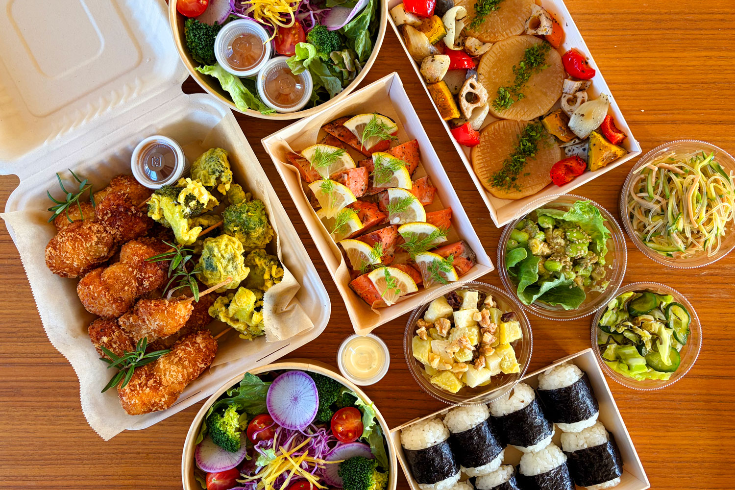 メイン2種/サラダ/副菜8種/ミニおにぎり